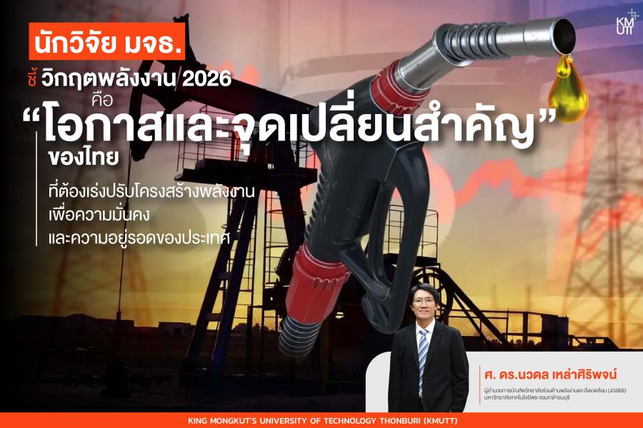 นักวิจัย มจธ. ชี้ วิกฤตพลังงาน 2026 คือ “โอกาสและจุดเปลี่ยนสำคัญ” ของไทยที่ต้องเร่งปรับโครงสร้างพลังงานเพื่อความมั่นคงและความอยู่รอดของประเทศ