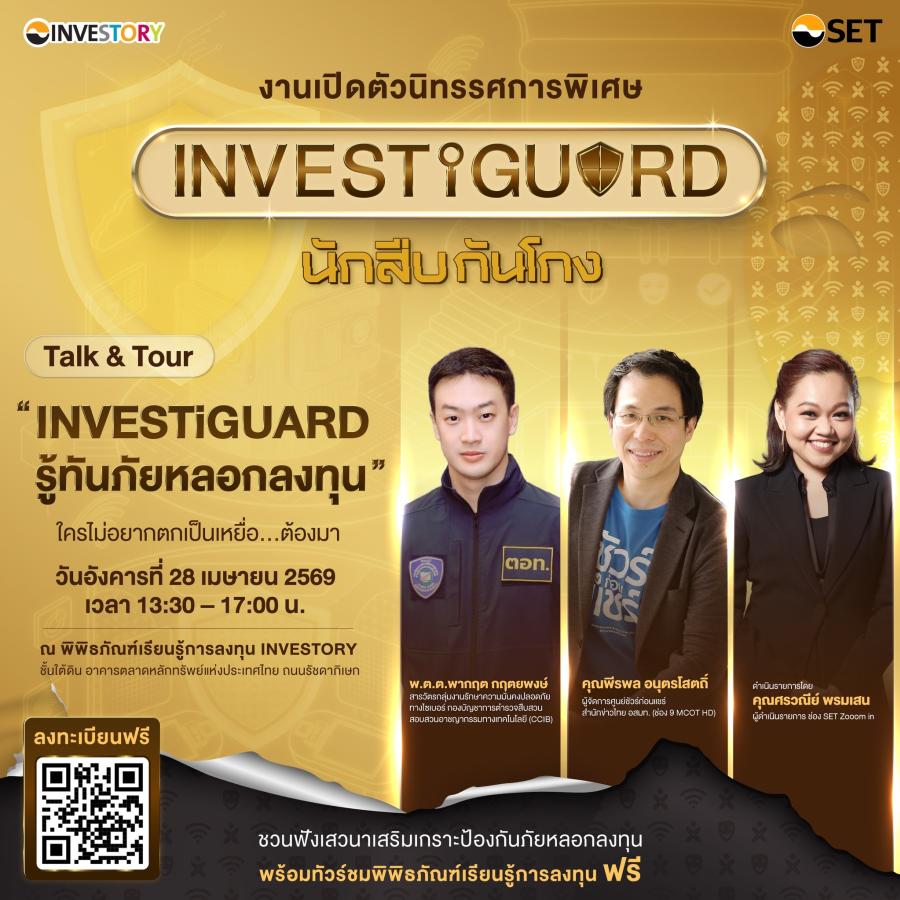 ตลาดหลักทรัพย์ฯ เชิญมาสัมผัสประสบการณ์กับนิทรรศการพิเศษชุดใหม่-เสวนาฟรี “INVESTiGUARD” เสริมเกราะรู้ทันกลโกง 28 เม.ย. นี้