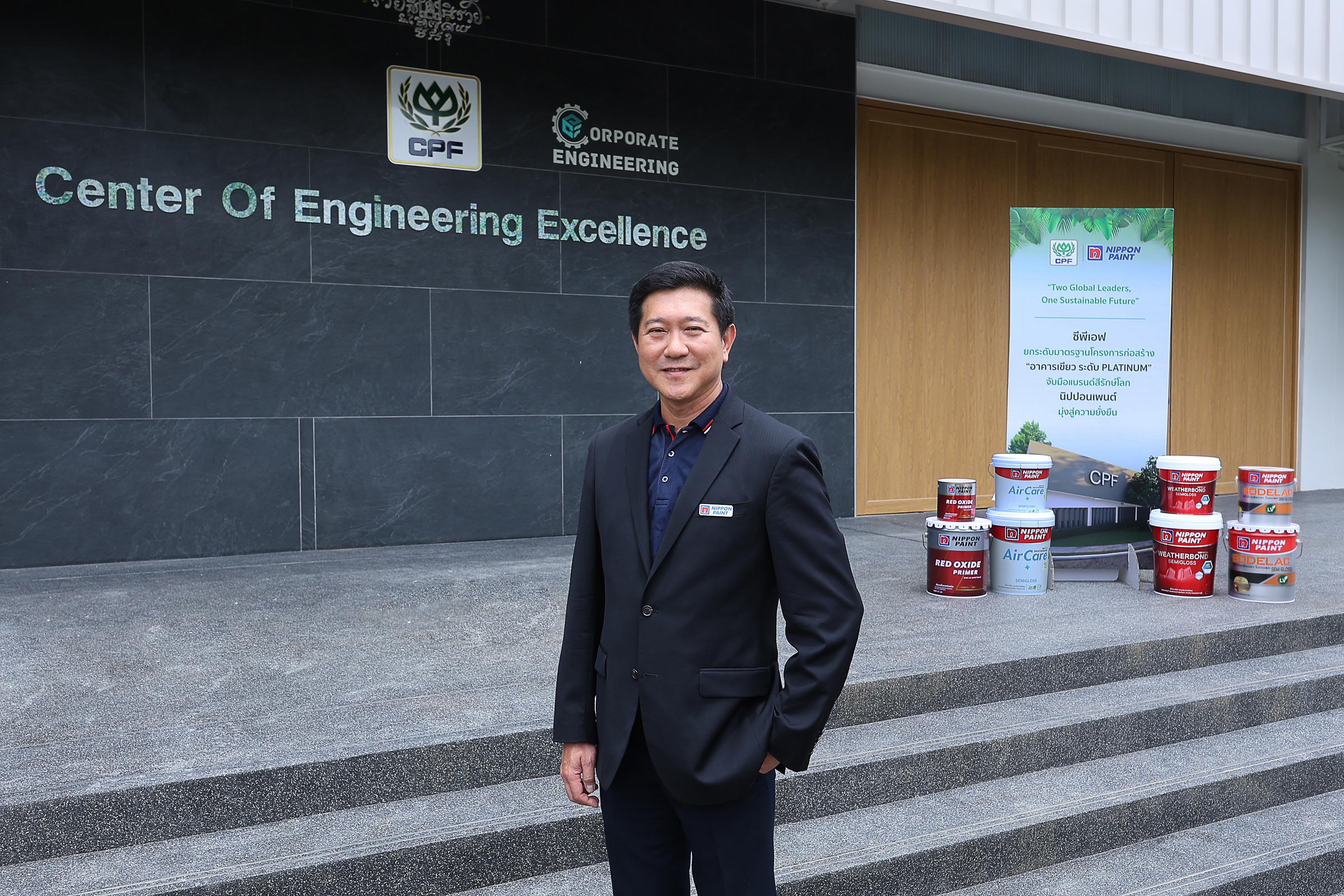 “นิปปอนเพนต์มีความภาคภูมิใจอย่างยิ่งที่ได้เป็นส่วนหนึ่งในภารกิจการก่อสร้างโครงการต่างๆ ของซีพีเอฟให้เป็นอาคารที่เป็นมิตรต่อสิ่งแวดล้อมและได้รับการรับรองมาตรฐานอาคารเขียว โดยนิปปอนเพนต์มีความพร้อมทั้งด้านวิสัยทัศน์และผลิตภัณฑ์สีนวัตกรรมที่จะเดินเคียงข้างไปพร้อมกับคู่ค้า เพื่อส่งเสริมให้คู่ค้าบรรลุวัตถุประสงค์บนเส้นทางแห่งความยั่งยืนและพัฒนาไปสู่สังคมคาร์บอนต่ำร่วมกัน” คุณวัชระ กล่าว