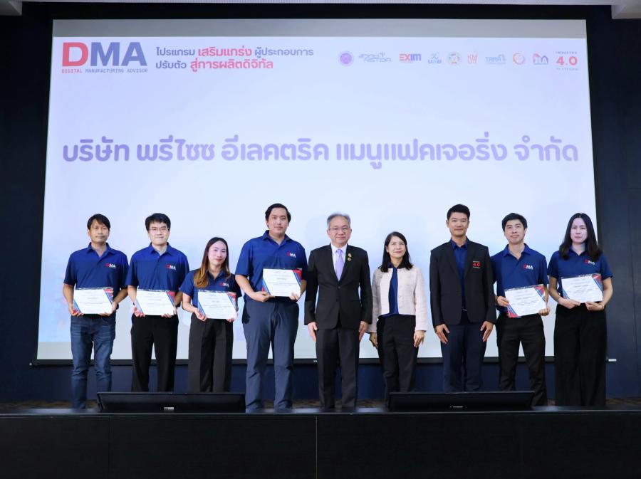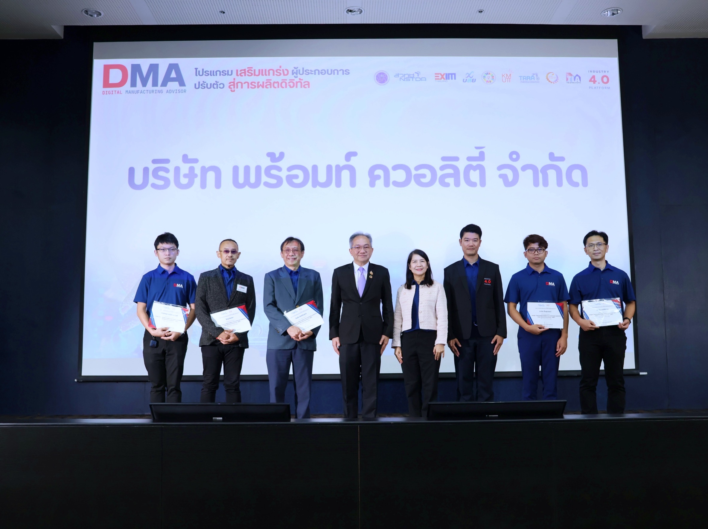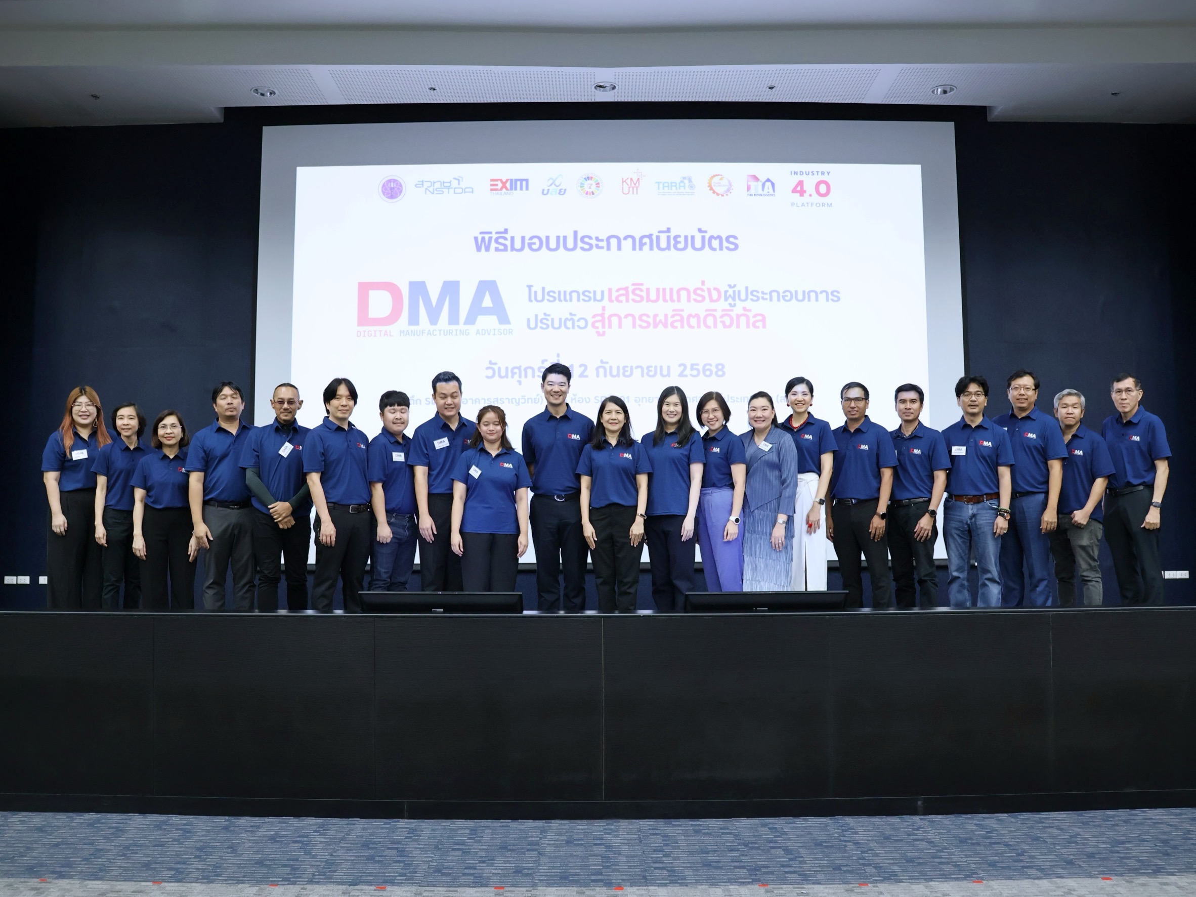 สำนักงานพัฒนาวิทยาศาสตร์และเทคโนโลยีแห่งชาติ (สวทช.) จัดพิธีมอบประกาศนียบัตรแก่ผู้ผ่านการอบรมหลักสูตร “โปรแกรมเสริมแกร่งผู้ประกอบการปรับตัวสู่การผลิตดิจิทัล (Digital Manufacturing Advisor : DMA)” รวม 51 คน ที่อุทยานวิทยาศาสตร์ประเทศไทย จ.ปทุมธานี เพื่อสร้างที่ปรึกษาด้านการผลิตดิจิทัล ช่วยหนุนผู้ประกอบการไทยก้าวสู่ Industry 4.0 อย่างยั่งยืน