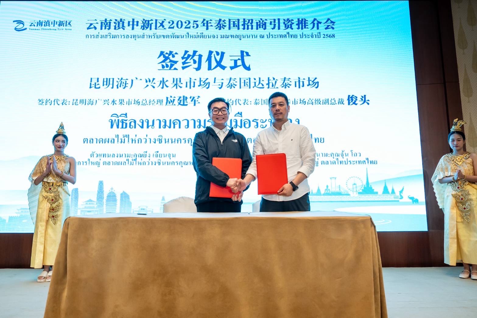 ในการประชุมครั้งนี้ ยังมีการแลกเปลี่ยนและหารือกันอย่างใกล้ชิดถึงทิศทางความร่วมมือในอนาคต รูปแบบการร่วมทุน และโครงการที่มีศักยภาพ ซึ่งส่งผลให้เกิดการลงนามในข้อตกลงความร่วมมือระหว่างสองประเทศ ระหว่างนายยิ่ง เจี่ยนจุน ผู้จัดการใหญ่ตลาดไห่กว่างซิง นครคุนหมิง และนายจุ้น โถว รองผู้จัดการใหญ่ ตลาดไท ประเทศไทย