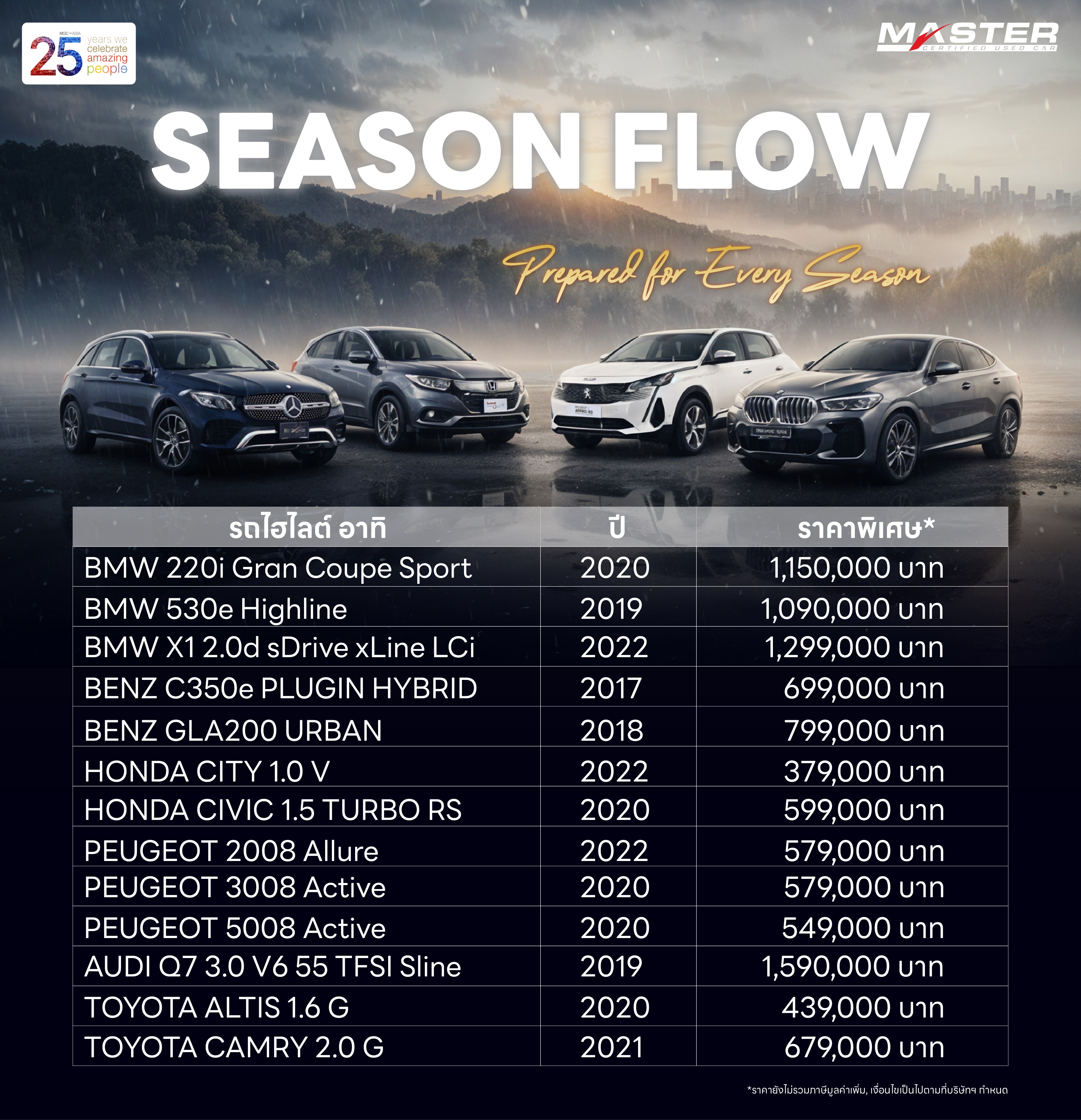 มาสเตอร์ เซอร์ทิฟายด์ ยูสคาร์ ชูแคมเปญ ‘SEASON FLOW’ ยกทัพรถมือสองพรีเมียม กว่า 300 คัน จัดแสดงพร้อมจำหน่าย ดอกเบี้ยต่ำสุด 0% พร้อมสิทธิพิเศษ ตลอดตค.นี้
