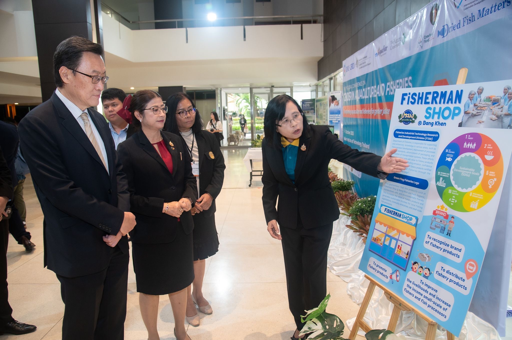 การอภิปรายแบบเสวนา การนำเสนอผลงานวิจัยและบทความวิชาการ พร้อมทั้งแลกเปลี่ยนมุมมองกับผู้เชี่ยวชาญระดับนานาชาติ โดยในส่วนของกรมประมงได้ร่วมจัดนิทรรศการนำเสนอผลงานโครงการนำร่องการเลี้ยงปลาในนาข้าวจ.มหาสารคาม การจัดแสดงโมเดลฟาร์มเพาะเลี้ยงสัตว์น้ำแบบยั่งยืน รวมถึงบูท Fisherman Shop และกลุ่มวิสาหกิจชุมชนแปรรูปสินค้าสัตว์น้ำ ภายใต้โครงการสินค้าเกษตรมูลค่าสูงจ.ปทุมธานี