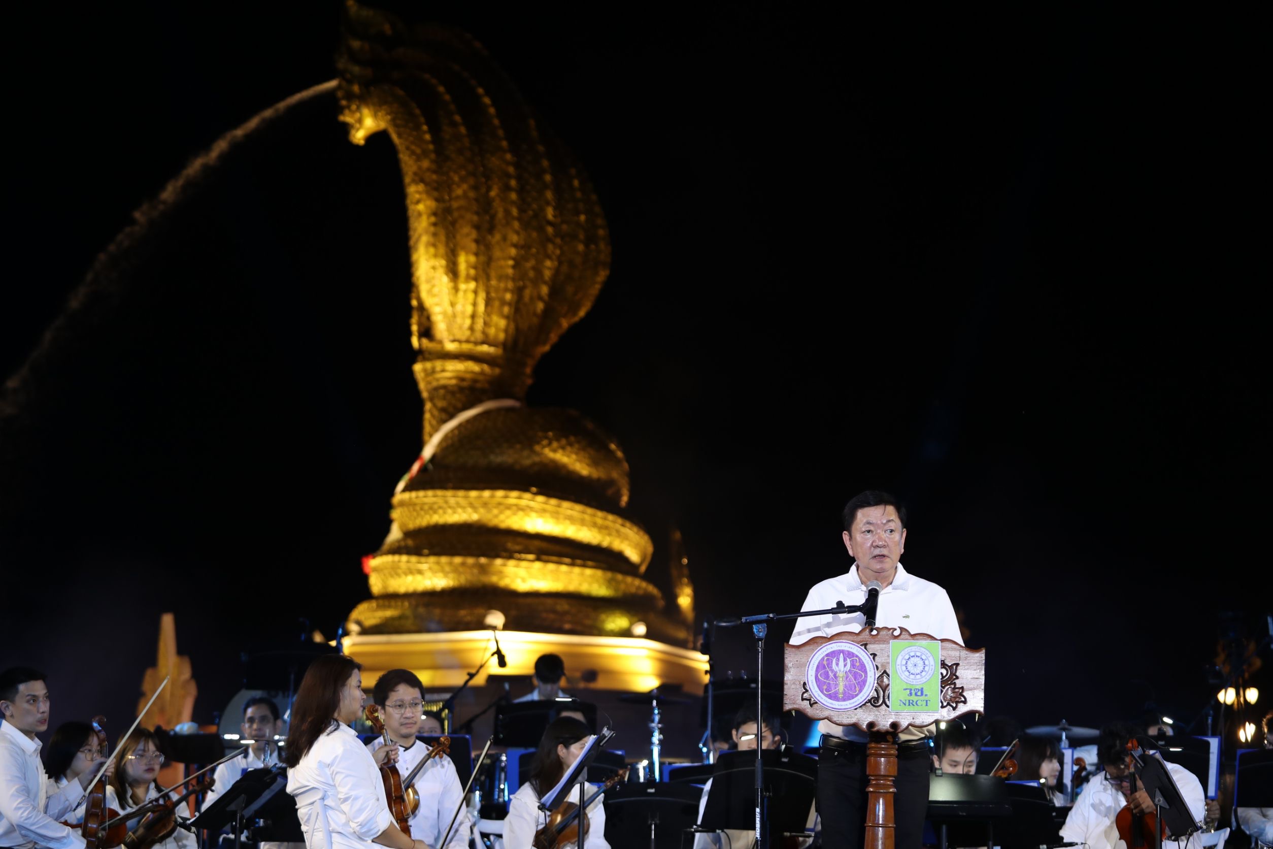 นายนิวัต เจียวิริยบุญญา นายกเทศมนตรีเมืองนครพนม กล่าวว่า เป็นเรื่องน่ายินดีในการนำวงไทยซิมโฟนีออร์เคสตร้ามาแสดงที่ลานพญานาคแห่งนี้ ด้วยเป็นเรื่องที่ทำได้ยากที่จะนำวงดนตรีขนาดใหญ่ ที่มีผู้แสดงมากกว่า 100 ชีวิต รวมถึงทีมงานคุณภาพ ทั้งแสง สี และภาพ มาทำการแสดงให้พี่น้องชาวนครพนมได้รับชม และซึมซับถึงวัฒนธรรมอันงดงามของท้องถิ่น เพื่อเป็นต้นแบบให้พื้นที่และเยาวชนคนรุ่นใหม่ ได้ชื่นชมและนำออกไปเผยแพร่ต่อไป