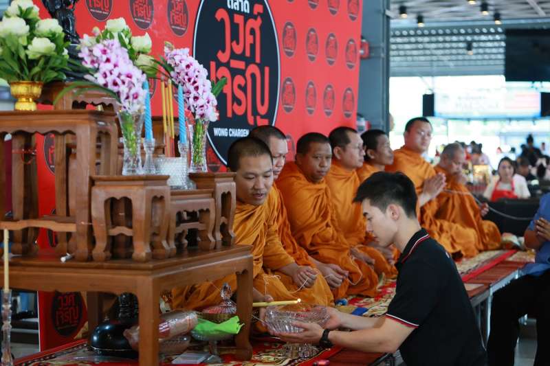 ในช่วงเช้าได้จัดพิธีทำบุญเพื่อความเป็นสิริมงคลแก่ตลาดวงศ์เจริญ พร้อมทั้งจัดพิธีมอบทุนการศึกษาแก่นักเรียนในเขตทวีวัฒนา จำนวน 300 ทุน ทุนละ 3000 บาท เพื่อถวายเป็นพระราชกุศลแด่สมเด็จพระนางเจ้าสิริกิติ์ พระบรมราชินีนาถ พระบรมราชชนนีพันปีหลวง และเพื่อสร้างขวัญกำลังใจแด่นักเรียนที่มีผลการเรียนดี ความประพฤติดี ให้มีกำลังใจในการศึกษาเล่าเรียนและเป็นคนดีของสังคมต่อไป