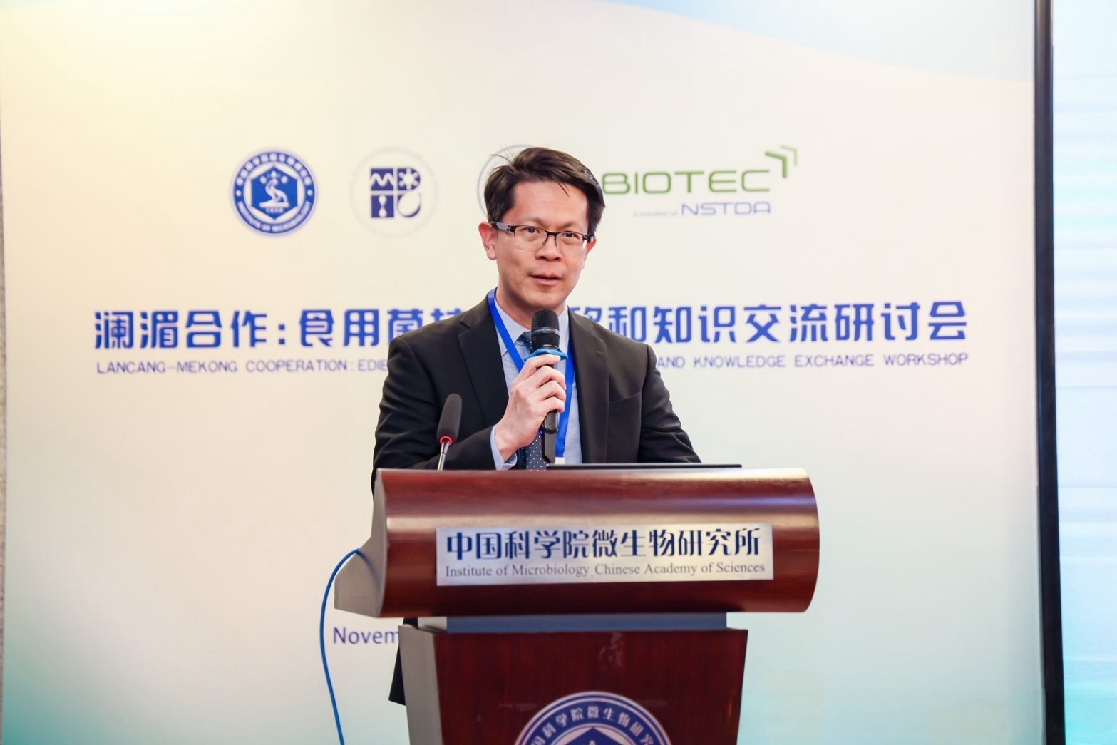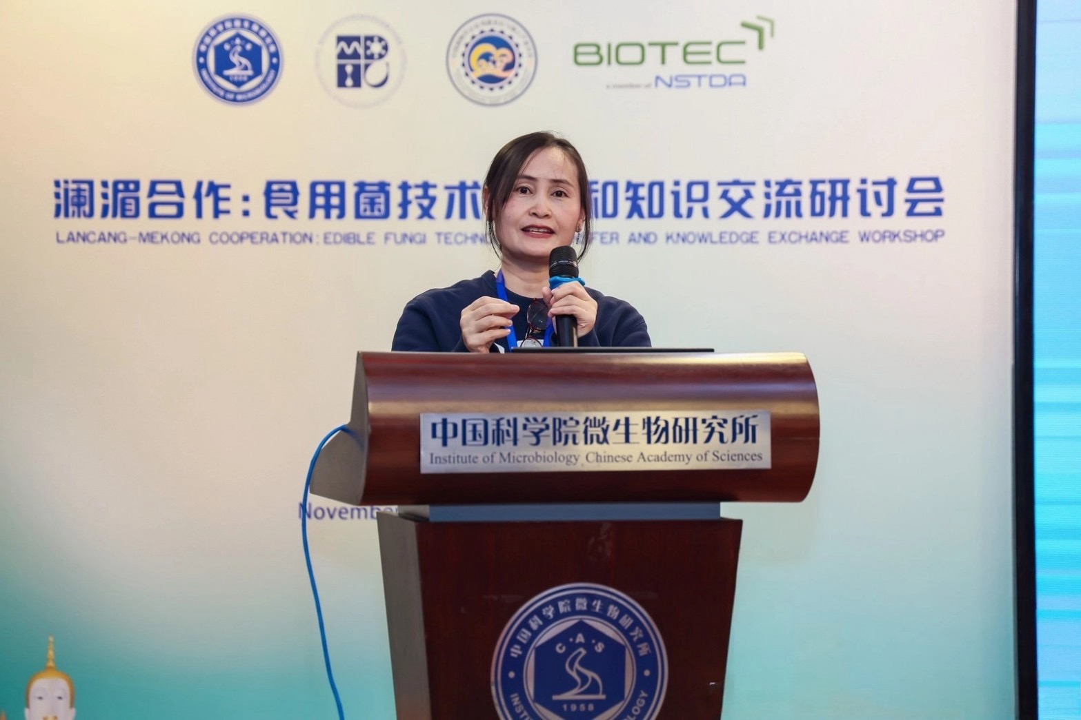 ภายใต้โครงการ “การถ่ายทอดเทคโนโลยีและแลกเปลี่ยนความรู้เกี่ยวกับเห็ดบริโภคได้เพื่อการพัฒนาทางเศรษฐกิจและการเกษตรที่ยั่งยืนระหว่างประเทศในภูมิภาคแม่น้ำโขง” ที่ได้รับทุนจากกองทุนพิเศษความร่วมมือล้านช้าง-แม่โขง (LMCSF Funded Project) โดยรัฐบาลสาธารณรัฐประชาชนจีน เพื่อเป็นเวทีแลกเปลี่ยนองค์ความรู้และถ่ายทอดเทคโนโลยีการเพาะและการแปรรูปเห็ดกินได้ ซึ่งถือเป็นแหล่งอาหารโปรตีนทางเลือกและวัตถุดิบสำคัญที่มีศักยภาพสูงในการสร้างความมั่นคงทางอาหารและการพัฒนาเกษตรกรรมอย่างยั่งยืนในประเทศลุ่มน้ำโขง มีผู้เข้าร่วมกว่า 70 คน จากนักวิจัย ผู้ประกอบการ และเกษตรกรจากลุ่มน้ำโขงและจีน โดยได้รับเกียรติจาก Dr. Qi-Hui Wang รองผู้อำนวยการ IMCAS เป็นประธานเปิดงาน