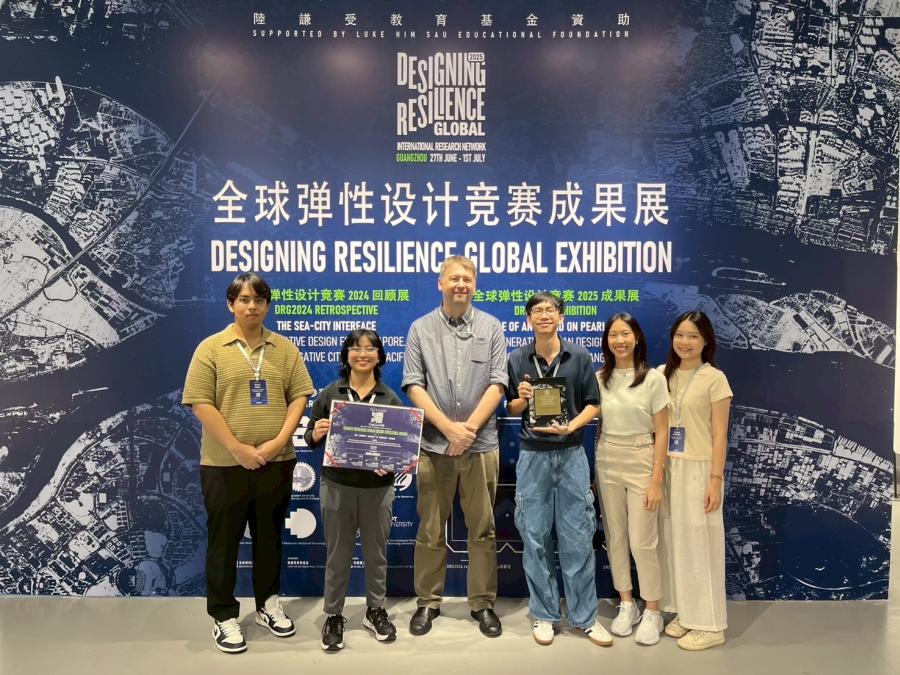 ท่ามกลางภาวะโลกที่ร้อนขึ้นและน้ำทะเลที่สูงขึ้นทุกปี หลายเมืองทั่วโลกกำลังถูกทดสอบและต้องหาคำตอบให้ได้ว่า “เมืองจะอยู่ร่วมกับธรรมชาติได้อย่างไรให้ยั่งยืน” นี่คือคำถามที่ทีมนักศึกษาชั้นปีที่สี่ 12 คนจากคณะสถาปัตยกรรมศาสตร์และการออกแบบ มหาวิทยาลัยเทคโนโลยีพระจอมเกล้าธนบุรี (มจธ.) ลงมือค้นหาจนได้คำตอบเป็นผลงาน “Rooted Currents” ที่สามารถคว้ารางวัลชนะเลิศระดับนานาชาติ Climate Resilience Urban Design Excellence Award จากเวที Designing Resilience Globally (DRG) 2025 ที่เมืองกวางโจว สาธารณรัฐประชาชนจีน ด้วยแนวคิดอันแตกต่างที่ไม่ได้เข้าไปจัดการธรรมชาติแต่ “อยู่ร่วมกับกระแสน้ำและรากฐานวัฒนธรรม” จนนำไปสู่การสร้างผังเมืองที่มีชีวิต และอยู่ได้อย่างมั่นคงในโลกปัจจุบัน
