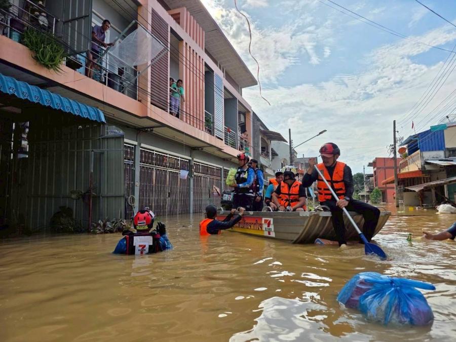 ทีมกู้ภัยเซเว่นฯ ชมรมจิตสาธารณะซีพี ออลล์ ลงพื้นที่อพยพชาวบ้านชุมชนเขต8 หาดใหญ่ จ.สงขลา อย่างเร่งด่วน เพื่อออกจากจุดน้ำท่วมอันตราย ก่อนน้ำท่วมสูงและตัดขาด