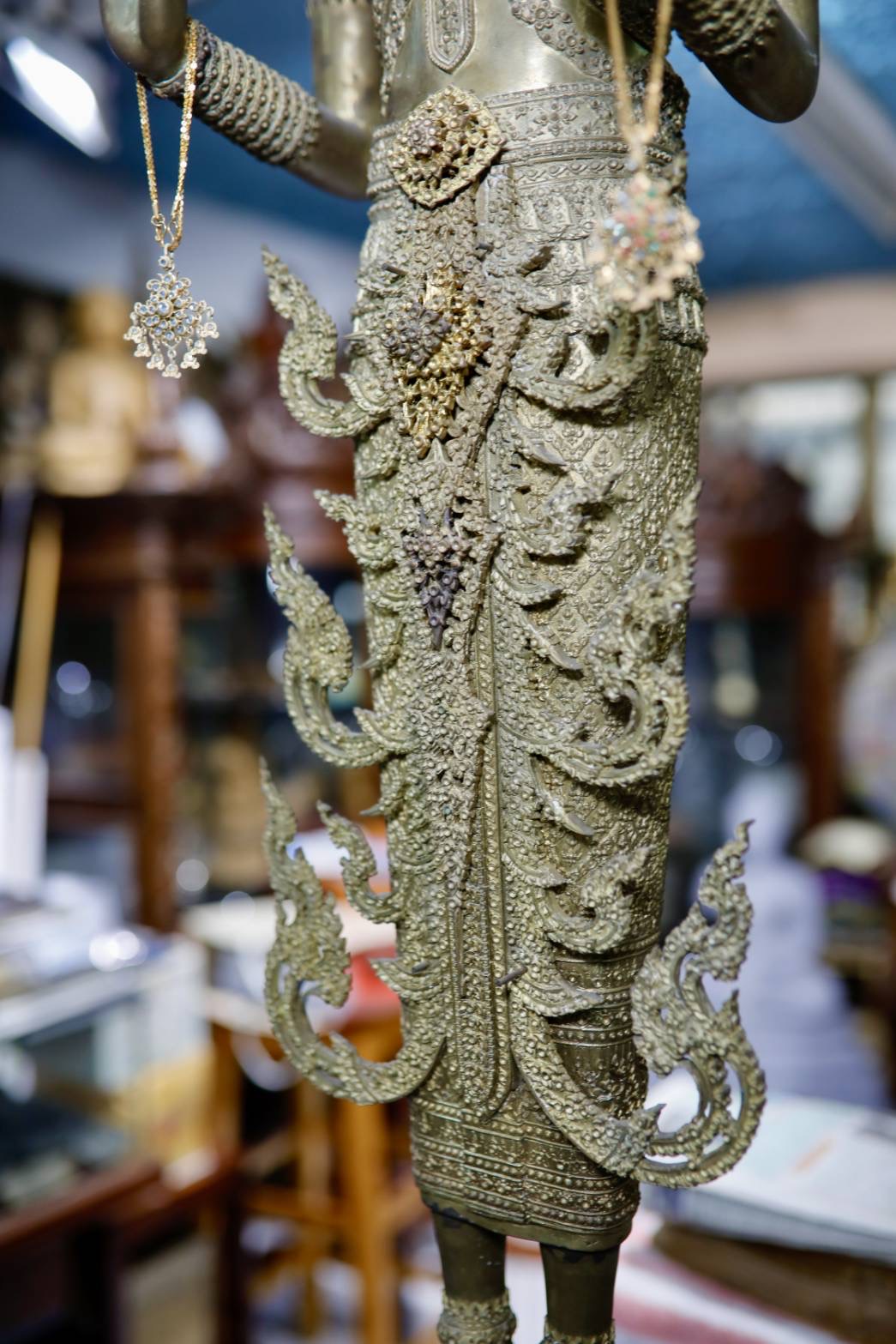ความซับซ้อนของลวดลาย เป็นงานที่มี ลวดลายซ้อนระดับสูง ซึ่งต้องใช้ความประณีตตั้งแต่การสลักหินสบู่ลวดลายรัตนยุคต้นไปจนถึงการซ้อนชั้นลายบนตัวองค์