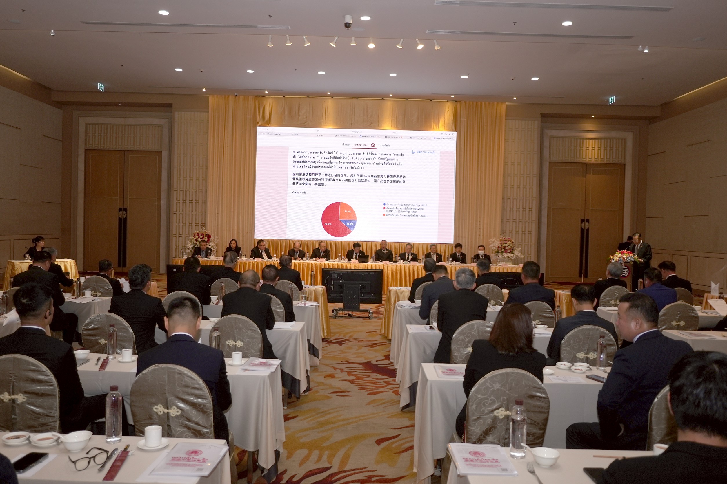 จากการสำรวจของหอการค้าไทยจีน พบว่าร้อยละ 51.7 ของผู้ตอบแบบสอบถาม ได้รับรู้หรือรู้สึกได้ว่าสินค้าจีนได้ส่งออกมายังประเทศไทยมากขึ้น หลังจากที่สหรัฐอเมริกาประกาศสงครามการค้ากับประเทศจีน แต่ร้อยละ 21.6 ของผู้ตอบแบบสำรวจ ให้ความเห็นว่าปริมาณสินค้าจากจีนนั้นไม่ได้เพิ่มขึ้นแต่อย่างใด