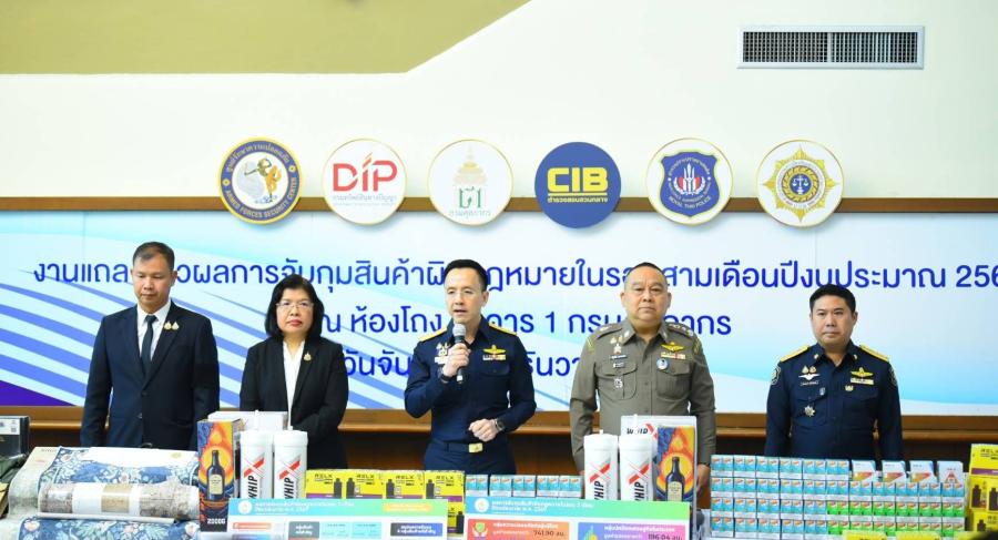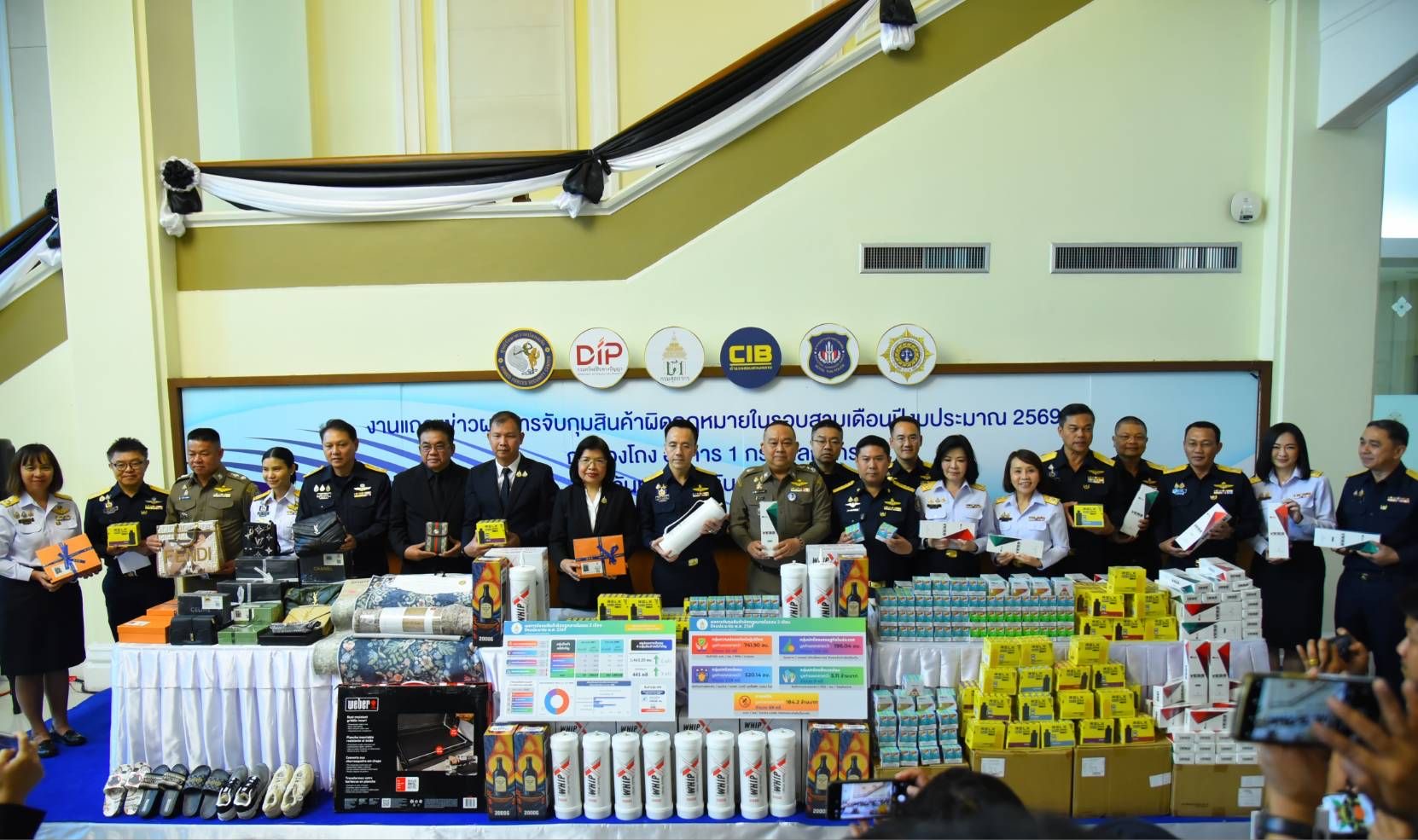 วันที่ 29 ธ.ค. นายพันธ์ทอง ลอยกุลนันท์ อธิบดีกรมศุลกากร แถลงข่าวผลการจับกุมสินค้าผิดกฎหมายที่สำคัญในรอบ3 เดือน ปีงบประมาณ พ.ศ. 2569 มูลค่ากว่า 1600 ล้านบาท โดยมี นางอรมน ทรัพย์ทวีธรรม อธิบดีกรมทรัพย์สินทางปัญญา พล.ต.ท.ณัฐศักดิ์ เชาวนาศัย ผู้บัญชาการตำรวจสอบสวนกลาง (CIB) พล.ต.ท.อาชยน ไกรทอง ผู้บัญชาการตำรวจปราบปรามยาเสพติด (บช.ปส.) นายพีรพงศ์ รำพึงจิตต์ ผู้อำนวยการส่วนปฏิบัติการข่าวและปราบปรามยาเสพติด 6 คณะกรรมการป้องกันและปราบปรามยาเสพติด (ปปส.) และ พ.อ. กอบปิติ ถาวรพฤกษ์ ผู้อำนวยการกอง 12 สำนักปฏิบัติการข่าว ศูนย์รักษาความปลอดภัย กองบัญชาการกองทัพไทย (ศรภ.) เข้าร่วมในการแถลงข่าวครั้งนี้ ที่ห้องโถง อาคาร 1 กรมศุลกากร