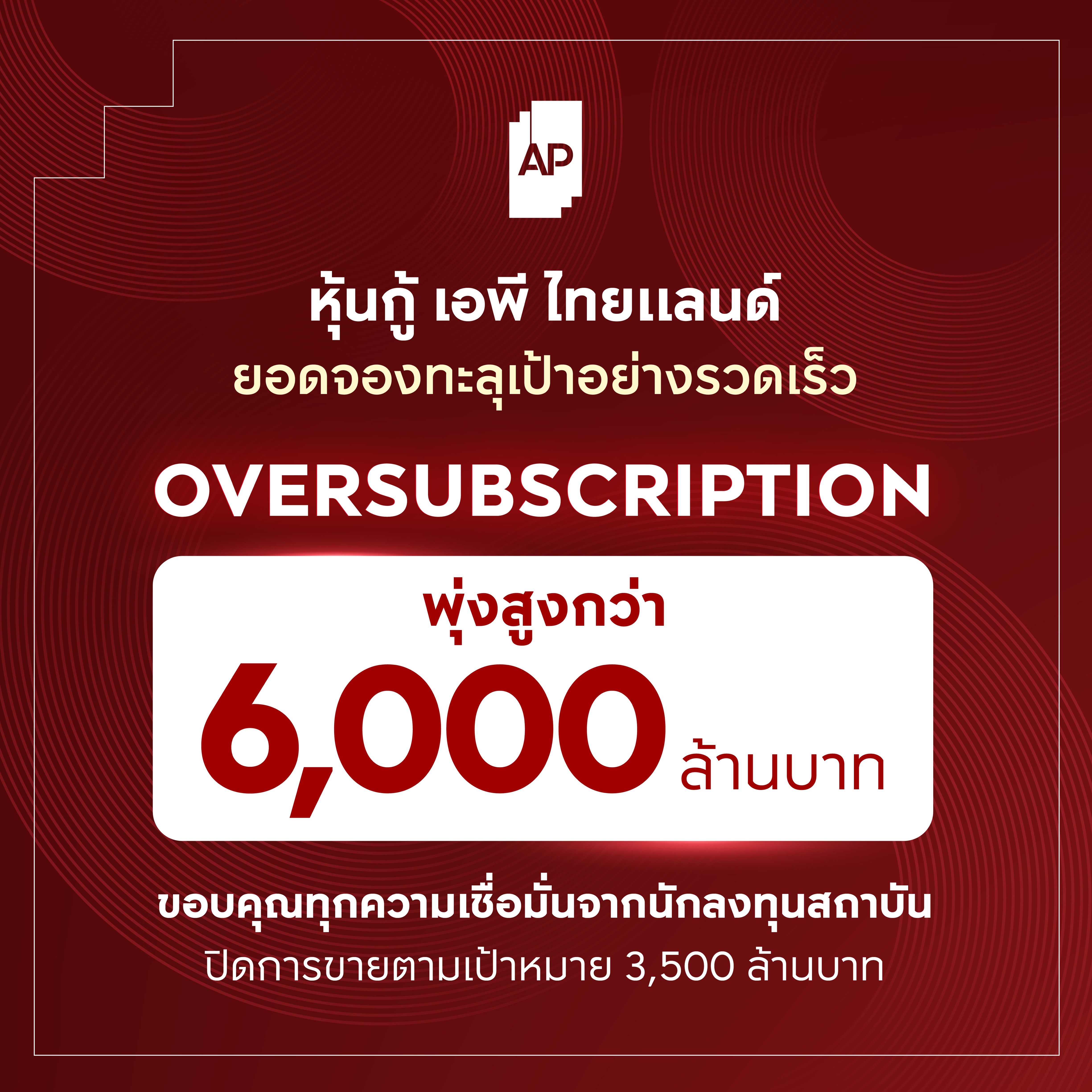 เอพี ไทยแลนด์ โชว์แกร่งรับต้นปี 2569 ปิดจองหุ้นกู้ Oversubscription ทะลุ 6000 ล้านบาท สะท้อนนักลงทุนสถาบันเชื่อมั่นแข็งแกร่ง