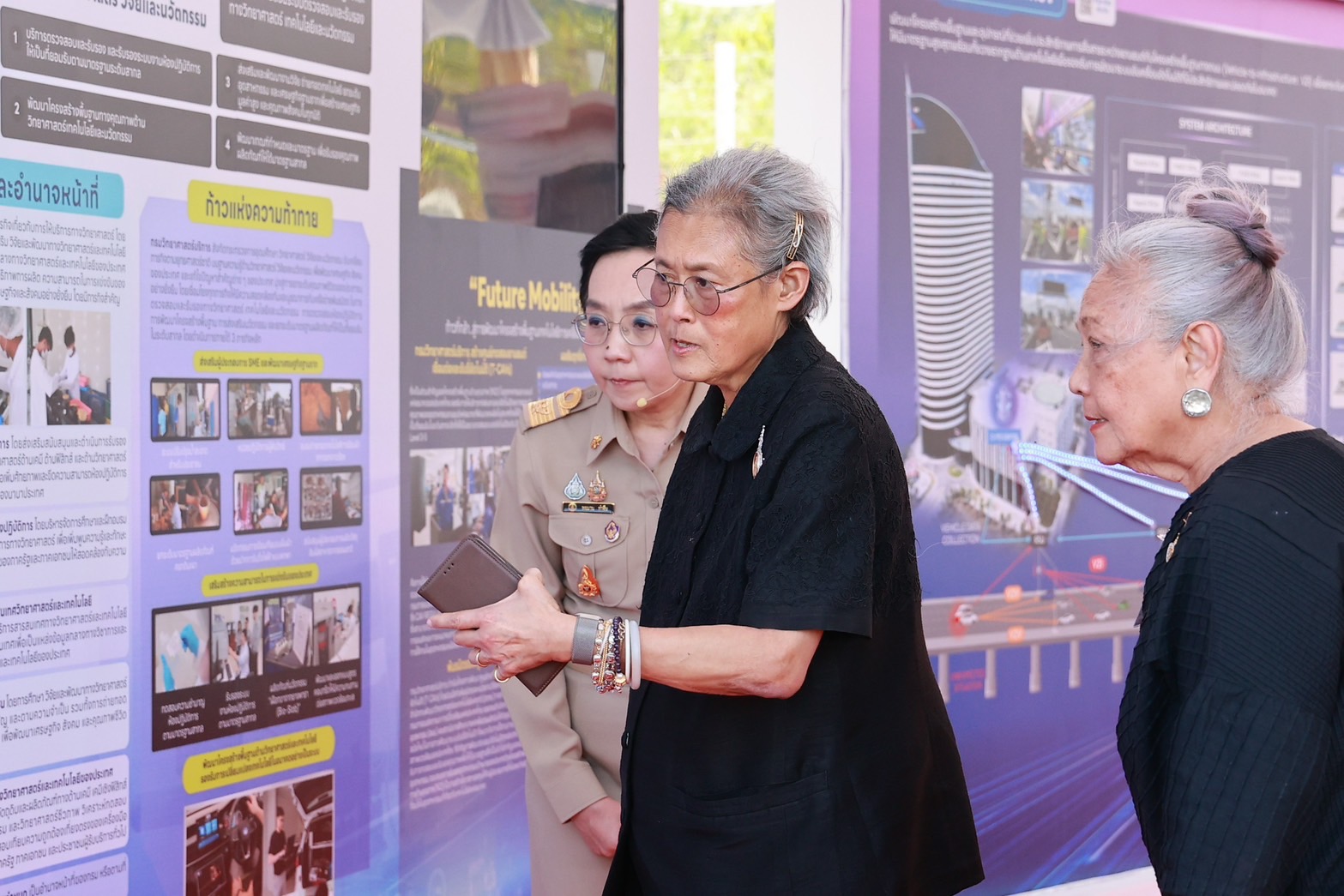 จากนั้น สมเด็จพระกนิษฐาธิราชเจ้า กรมสมเด็จพระเทพรัตนราชสุดาฯ สยามบรมราชกุมารี เสด็จพระราชดำเนินไปยังจุดแสดงนิทรรศการ ทรงทอดพระเนตรนิทรรศการภาพรวมของกรมวิทยาศาสตร์บริการ โดย ดร.พจมาน ได้กราบบังคมทูลถวายรายงานผลการดำเนินงานโครงการฯ ซึ่งมีเป้าหมายเพื่อจัดตั้งสนามทดสอบยานยนต์อัตโนมัติที่เป็นโครงสร้างพื้นฐานสำคัญด้านคุณภาพ (National Quality Infrastructure: NQI) รองรับการพัฒนาการทดสอบ และการประเมินความปลอดภัยของยานยนต์แห่งอนาคต เพื่อยกระดับอุตสาหกรรมยานยนต์ของประเทศให้เป็นที่ยอมรับในระดับสากล