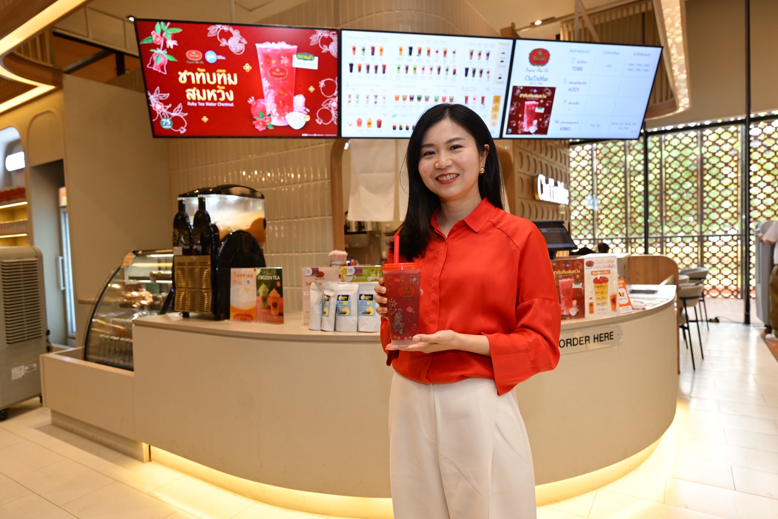 เมนู ชาทับทิมสมหวัง ภายใต้โปรเจกต์ “หลานม่า x ชาตรามือ : ความคิดถึงที่ดื่มได้” วางจำหน่ายในรูปแบบ Limited Edition ตลอดช่วงเทศกาลตรุษจีนนี้ ที่ร้านชาตรามือทุกสาขา