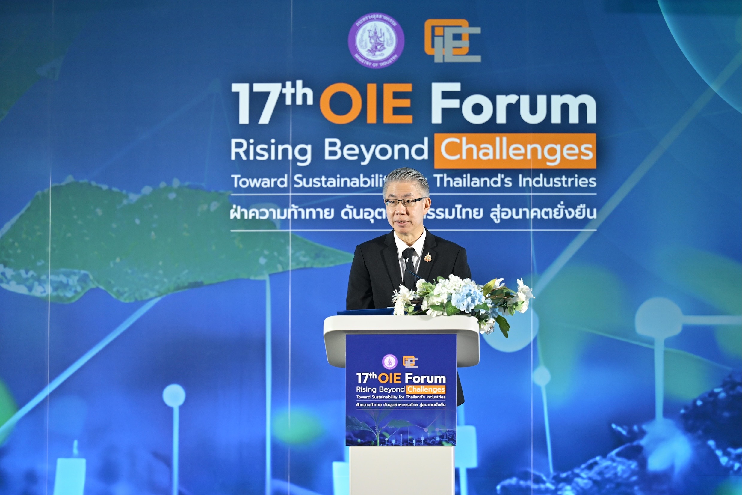 สำนักงานเศรษฐกิจอุตสาหกรรม (สศอ.) กระทรวงอุตสาหกรรม จัดงานใหญ่ประจำปี สศอ. (OIE Forum) ครั้งที่ 17 ภายใต้หัวข้อ “Rising Beyond Challenges : Toward Sustainability for Thailand’s Industries ฝ่าความท้าทาย ดันอุตสาหกรรมไทย สู่อนาคตยั่งยืน” ที่ศูนย์การประชุมแห่งชาติสิริกิติ์ และถ่ายทอดสดผ่านระบบออนไลน์ (Live Streaming) เพื่อเป็นเวทีสำคัญในการนำเสนอวิสัยทัศน์ แนวนโยบายและทิศทางการพัฒนาอุตสาหกรรม พร้อมสร้างความร่วมมือทุกภาคส่วนขับเคลื่อนภาคอุตสาหกรรมไทยให้ปรับตัวเท่าทันโลก และเติบโตอย่างมั่นคงบนฐานความยั่งยืน