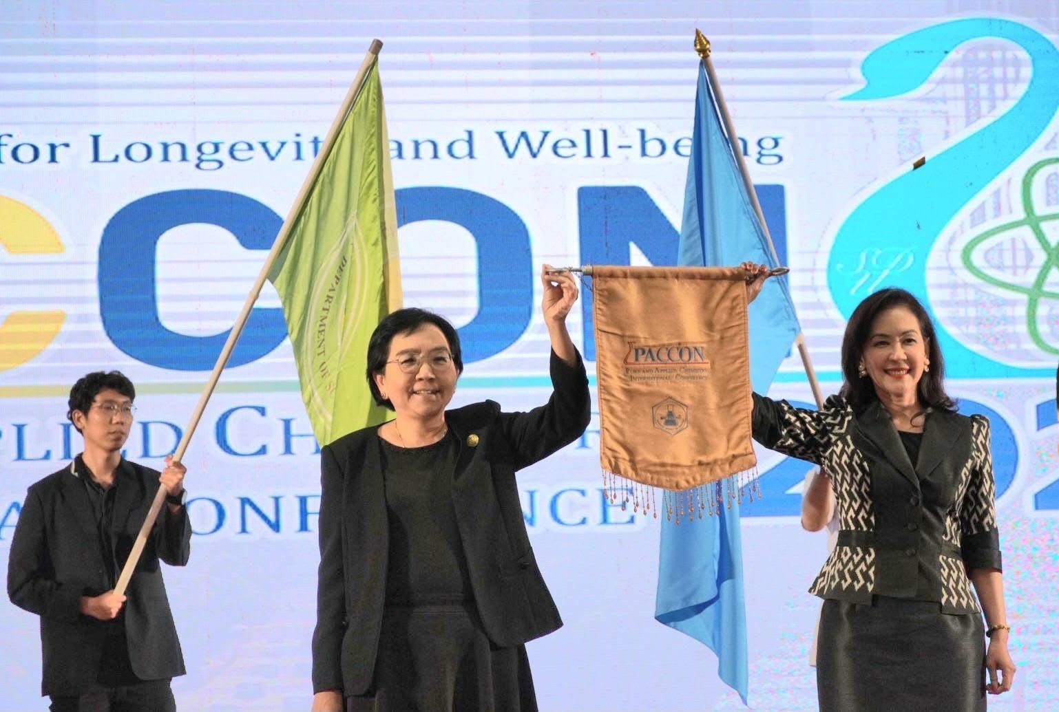 ดร.พจมาน ท่าจีน รองอธิบดี รักษาราชการแทนอธิบดีวศ. กล่าวว่า วศ. ขอขอบคุณสมาคมเคมีฯ ที่ให้โอกาส วศ. และมหาวิทยาลัยสวนดุสิต ได้ร่วมกันเป็นเจ้าภาพจัดงาน PACCON ในปี 2570 โดย วศ. ในฐานะหน่วยงานหลักด้านโครงสร้างพื้นฐานทางคุณภาพของประเทศ (National Quality Infrastructure: NQI) มีบทบาทสำคัญในการพัฒนา บูรณาการ และเสริมสร้างความเข้มแข็งของระบบตรวจสอบ วิเคราะห์ ทดสอบ และรับรองทางวิทยาศาสตร์ของประเทศ เราเป็นหน่วยงานแรกด้านวิทยาศาสตร์ของประเทศ ที่เริ่มต้นจากหน่วยวิเคราะห์แร่เติบโตต่อเนื่องเป็นสถานเคมีปฏิบัติผลิตนักเคมีจากรุ่นสู่รุ่น พัฒนาการไปตามยุคสมัย จนมีอายุครบ 135 ปีเมื่อเดือนม.ค.ที่ผ่านมา