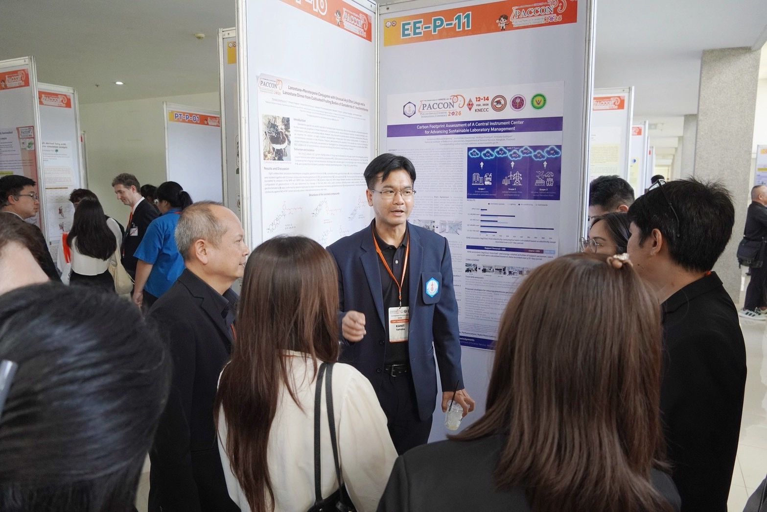ดร.กนิษฐ์ ตะปะสา ผู้เชี่ยวชาญเฉพาะด้านวิเคราะห์ทดสอบ (นักวิทยาศาสตร์ทรงคุณวุฒิ) ผู้อำนวยการสถาบันห้องปฏิบัติการอ้างอิงแห่งชาติ ผู้แทนกรมวิทยาศาสตร์บริการ นำคณะนักวิจัยของกรมเข้าร่วมเสนอผลงานทางวิชาการอย่างเข้มข้น สะท้อนศักยภาพงานวิจัยไทยสู่เวทีสากล ประกอบด้วย การนำเสนอแบบปากเปล่า (Oral Presentation) จำนวน 4 เรื่อง การนำเสนอแบบโปสเตอร์ (Poster Presentation) จำนวน 18 เรื่อง และการบรรยายแบบรวดเร็ว (Rapid-fire Talk) จำนวน 1 เรื่อง
