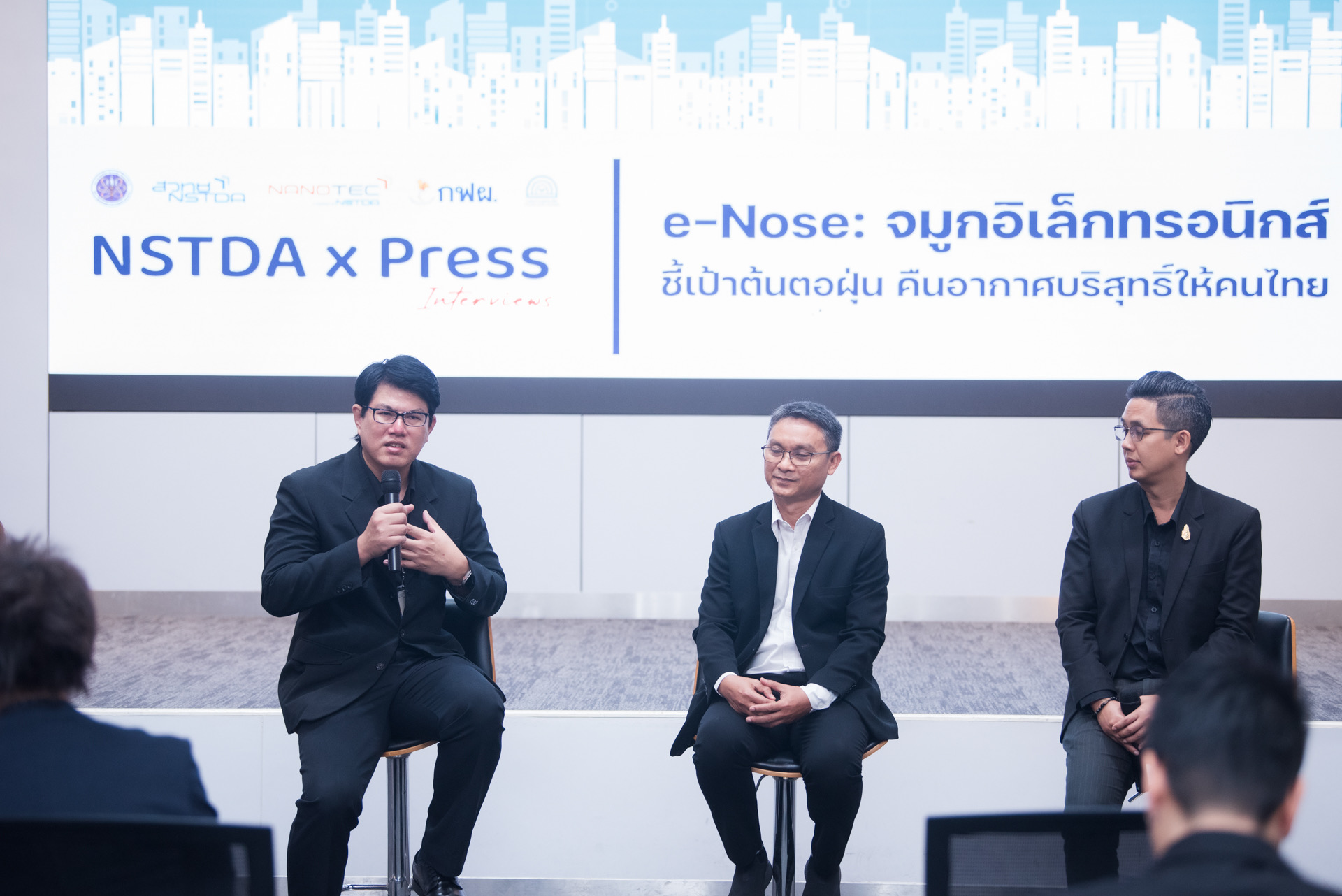 ขณะที่ ดร.ศักดา ตรีเดช ผู้อำนวยการส่วนนวัตกรรมคุณภาพอากาศและเสียง กรมควบคุมมลพิษ (คพ.) ซึ่งเป็นหน่วยงานกำหนดนโยบาย ภายใต้กระทรวงทรัพยากรธรรมชาติและสิ่งแวดล้อม (ทส.) กล่าวว่า หัวใจสำคัญของการควบคุมมลพิษคือ ”ข้อมูลที่แม่นยำ” (Precision Monitoring) ประเทศไทยจำเป็นต้องมีนวัตกรรมที่สามารถชี้เป้าแหล่งกำเนิดฝุ่นได้ตรงจุด e-Nose จะเป็นจิ๊กซอว์สำคัญที่สร้างฐานข้อมูลบิ๊กดาต้าให้กับกรมควบคุมมลพิษ เพื่อนำไปจัดทำมาตรการรับมือ บังคับใช้กฎหมาย และวางกรอบนโยบายควบคุมคุณภาพอากาศของประเทศให้เข้าเป้าและเกิดผลสัมฤทธิ์สูงสุด