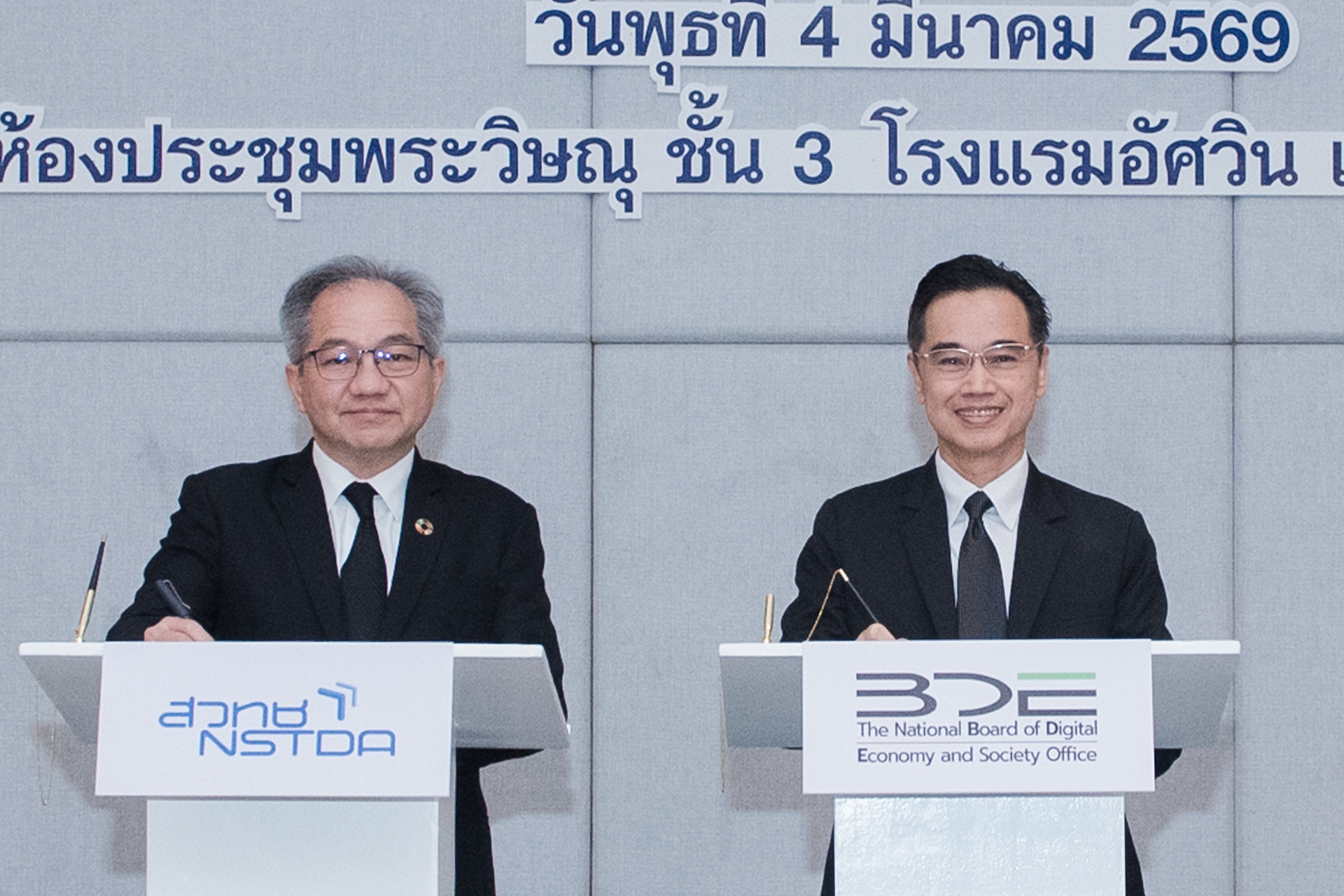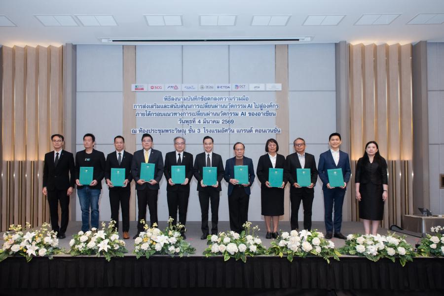 วันที่ 4 มี.ค. ที่โรงแรมอัศวิน แกรนด์ คอนเวนชั่น หลักสี่ กรุงเทพฯ: กระทรวงการอุดมศึกษา วิทยาศาสตร์ วิจัยและนวัตกรรม (อว.) สำนักงานพัฒนาวิทยาศาสตร์และเทคโนโลยีแห่งชาติ (สวทช.) โดยศ.ดร.ชูกิจ ลิมปิจำนงค์ ผู้อำนวยการ สวทช. และดร.ชัย วุฒิวิวัฒน์ ชัย ผู้อำนวยการศูนย์เทคโนโลยีอิเล็กทรอนิกส์และคอมพิวเตอร์แห่งชาติ (เนคเทค ) เข้าร่วมพิธีลงนามบันทึกข้อตกลงความร่วมมือ (MOU) การส่งเสริมและสนับสนุนการเปลี่ยนผ่านนวัตกรรม AI ไปสู่องค์กร ภายใต้กรอบแนวทางการเปลี่ยนผ่านนวัตกรรม AI ของอาเซียน ร่วมกับ 8 องค์กรชั้นนำในการขับเคลื่อน AI