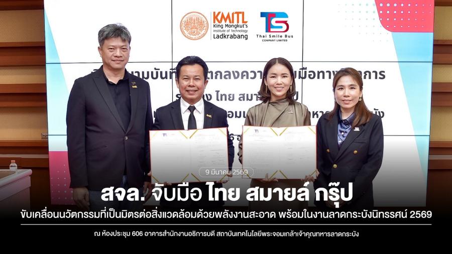 สถาบันเทคโนโลยีพระจอมเกล้าเจ้าคุณทหารลาดกระบัง (สจล.) ลงนามบันทึกข้อตกลงความร่วมมือ (MOU) กับกลุ่มบริษัท ไทย สมายล์ กรุ๊ป เพื่อร่วมกันพัฒนาองค์ความรู้ งานวิจัย และนวัตกรรมด้านระบบขนส่งพลังงานสะอาด รวมถึงการพัฒนาการท่องเที่ยวทางน้ำเชิงยั่งยืน โดยใช้ระบบ EV Bus และ EV Boat ที่ดำเนินงานจริงในกรุงเทพมหานคร เป็นพื้นที่เรียนรู้และทดลองเชิงปฏิบัติ (Living Lab) เพื่อเชื่อมโยงองค์ความรู้จากภาคการศึกษาสู่การใช้งานจริงในภาคอุตสาหกรรม