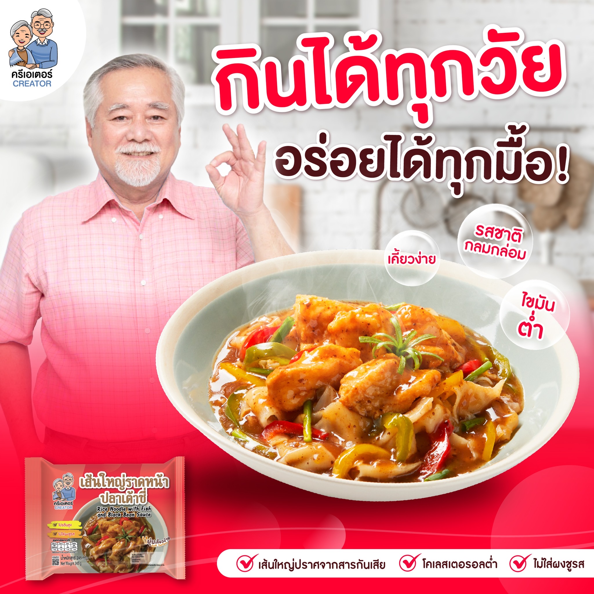ซีพีแรม พัฒนาอาหาร แบรนด์ “Creator” ตอบโจทย์สังคมผู้สูงอายุ และสายสุขภาพ ด้วยเมนูที่เนื้อสัมผัสนุ่ม เคี้ยวง่าย ย่อยง่าย มีส่วนโปรตีนที่เพิ่มขึ้น ไม่เน้นคาร์โบไฮเดรตมากนัก และไขมันต่ำ สอดรับธงโภชนาการปี 2569 ของกรมอนามัย