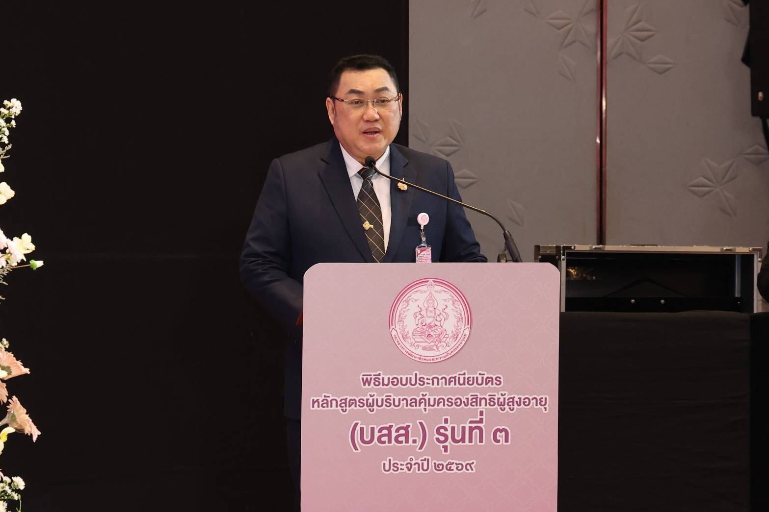 นายอัครา กล่าวต่อว่า โครงการบริบาลและคุ้มครองสิทธิผู้สูงอายุในชุมชน ถือเป็นการเตรียมความพร้อมรองรับสังคมสูงอายุ โดยกรมกิจการผู้สูงอายุ (ผส.) กระทรวง พม. มุ่งสร้าง ผู้บริบาลคุ้มครองสิทธิผู้สูงอายุ อันเป็นกลไกสำคัญในการดูแลผู้สูงอายุในชุมชนท้องถิ่น ทั้งในด้านการช่วยเหลือ ดูแล คุ้มครองสิทธิ และพัฒนาคุณภาพชีวิตผู้สูงอายุอย่างครอบคลุม 5 มิติ ได้แก่ สังคม สุขภาพ เศรษฐกิจ สภาพแวดล้อม และเทคโนโลยี เพื่อให้ผู้สูงอายุมีคุณภาพชีวิตที่ดีและดำรงชีวิตอย่างมีศักดิ์ศรี ทั้งนี้ ขอแสดงความยินดีกับผู้บริบาลคุ้มครองสิทธิผู้สูงอายุ (รายใหม่) ทุกคน และขอให้ปฏิบัติหน้าที่ด้วยความเสียสละ ยึดมั่นในจริยธรรมวิชาชีพ และคำนึงถึงประโยชน์สูงสุดของผู้สูงอายุ เพื่อร่วมกันเสริมสร้างครอบครัวเข้มแข็งและชุมชนที่อบอุ่นต่อไป