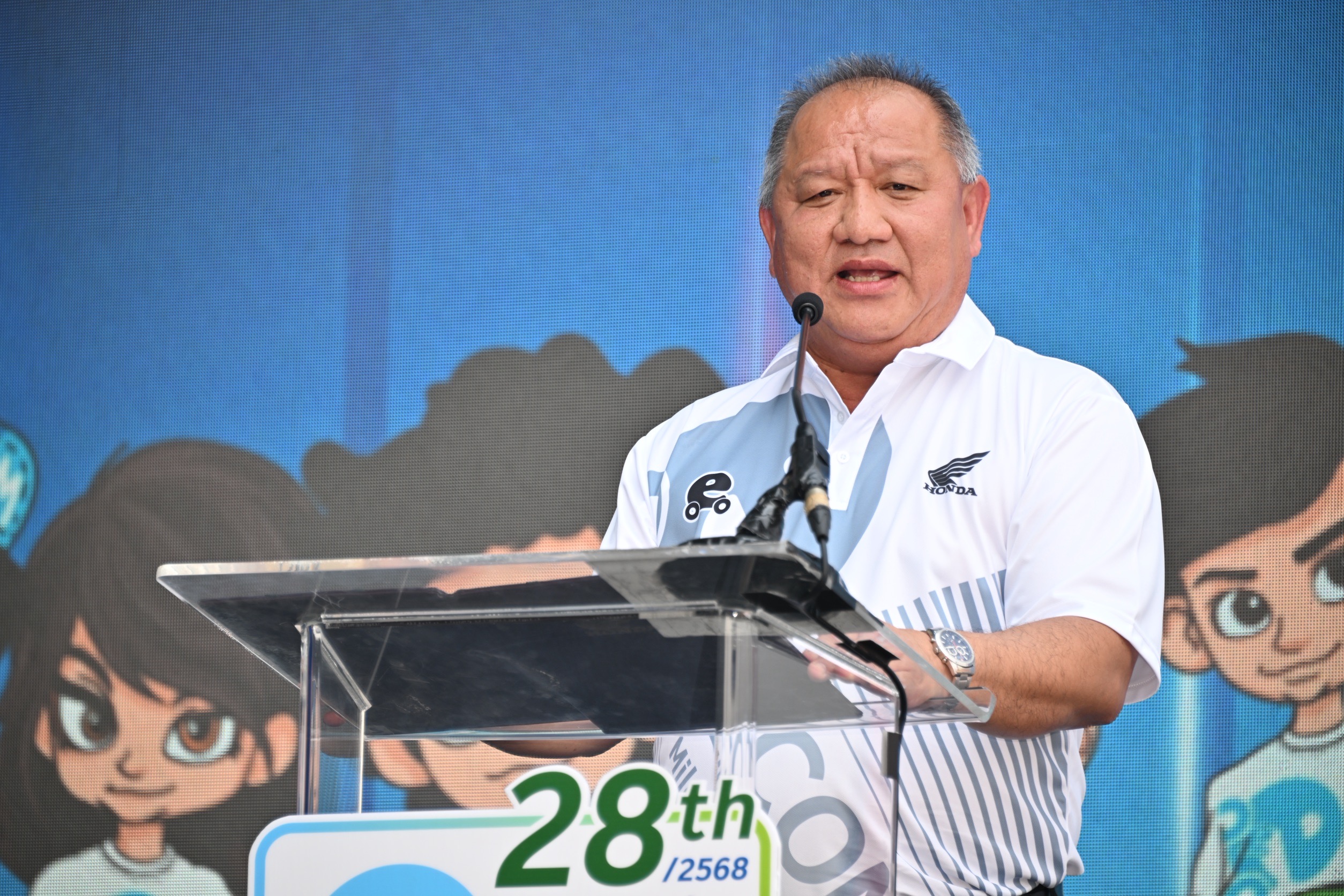ดร.อารักษ์ พรประภา ประธาน บริษัท ไทยฮอนด้า จำกัด กล่าวว่า การแข่งขันฮอนด้าประหยัดเชื้อเพลิง ที่ประเทศไทยจัดขึ้นเป็นประเทศที่ 2 ต่อยอดจากประเทศญี่ปุ่น มาอย่างยาวนานถึง 28 ปีในวันนี้ ซึ่งเป็นกิจกรรมที่ได้รับพระมหากรุณาธิคุณ จากสมเด็จพระกนิษฐาธิราชเจ้ากรมสมเด็จ พระเทพ รัตนราชสุดาฯสยามบรมราชกุมารี พระราชทานถ้วยรางวัลสำหรับทีมแข่งที่สามารถทำสถิติค่าประหยัดน้ำมันสูงสุด ด้วยเจตนารมย์และความมุ่งมั่นในการมีส่วนร่วมสร้างสรรค์สังคมไทย ประกอบกับ นโยบายดำเนินธุรกิจที่คำนึงถึงสิ่งแวดล้อม ความปลอดภัย การประหยัดพลังงาน และการศึกษา