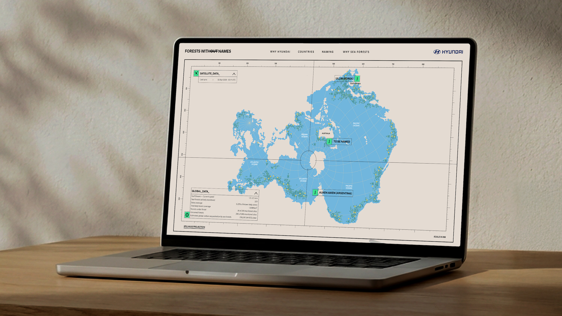 o อาร์เจนตินา: ฮุนไดกำหนดชื่อป่าใต้ทะเลว่า “Auken Aiken” ซึ่งมีความหมายว่า “ผืนดินแห่งชีวิต” ในภาษาท้องถิ่น ผ่านความร่วมมือกับองค์กรด้านทะเลและชุมชนในพื้นที่