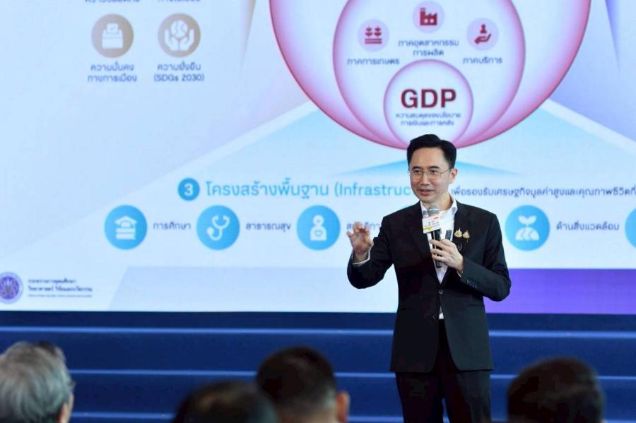 รองนายกฯ และ รมว.อว. กล่าวต่อว่า หัวใจสำคัญที่ต้องสร้างให้เกิดขึ้น ไม่ใช่แค่ตึกหรือห้องแล็บที่ทันสมัย แต่คือ “ระบบนิเวศนวัตกรรม” หรือ Innovation Ecosystem ที่ทรงพลัง เราต้องสร้างสภาพแวดล้อมที่ผลักดันให้คนอยากสร้างสรรค์สิ่งใหม่ๆ โดยอุทยานวิทยาศาสตร์ภูมิภาค (RSP) หรือ Science Park จะเป็นกลไกสำคัญในการเป็นสะพานเชื่อมงานวิจัยและนวัตกรรมของ อว. จาก ”หิ้งสู่ห้าง” เป้าหมายสำคัญของ อุทยานวิทยาศาสตร์ภูมิภาคคือการเป็นจุดเชื่อมต่อระหว่าง ภาคการศึกษาและงานวิจัย (Education & Research) กับ ภาคธุรกิจและนวัตกรรม (Innovation & Market) เพื่อผลักดันเทคโนโลยีเชิงลึก (Deep Tech) ให้ออกมาสู่ตลาด
