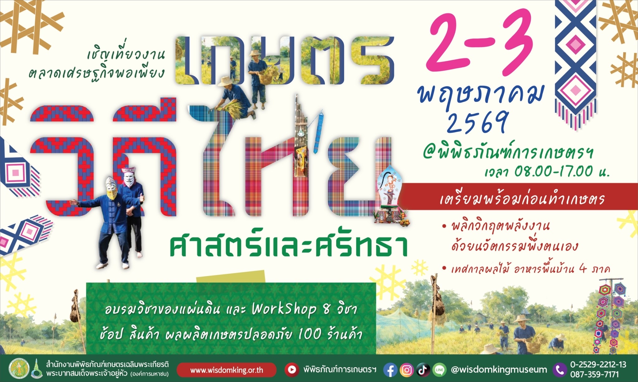2-3 พ.ค.นี้ พิพิธภัณฑ์การเกษตรฯ จัดงานตลาดเศรษฐกิจพอเพียง “เกษตรวิถีไทย ศาสตร์และศรัทธา” รวมเคล็ดไม่ลับความมั่นคงทางอาหารอย่างยั่งยืน